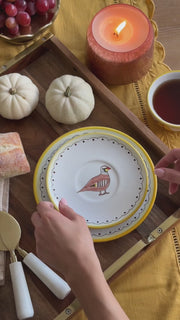 The Pheasant Plate is designed by Backcountry Mercantile and hand-painted by renowned Italian ceramicist Fima Deruta.