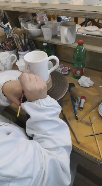The Boxed Set of (4) Mugs in our 'Stag' Collection is designed by Backcountry Mercantile and hand-painted by renowned Italian ceramicist Fima Deruta.