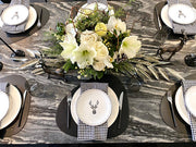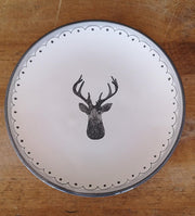 The Stag Plate is designed by Backcountry Mercantile and hand-painted by renowned Italian ceramicist Fima Deruta.
