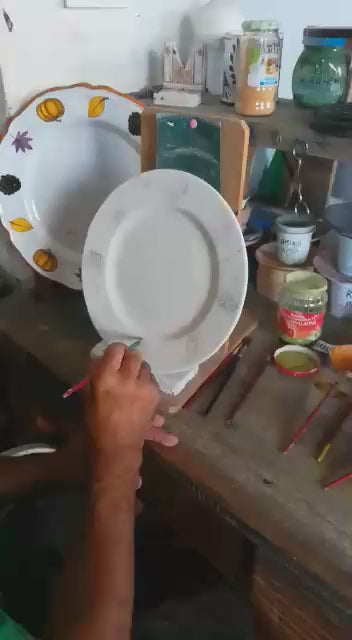 This is an individual dinner plate and measures just over 10 inches in diameter. It fits perfectly on top of either the 'Turkey' or 'Pumpkin' Charger and may be used as either a luncheon or dinner plate.