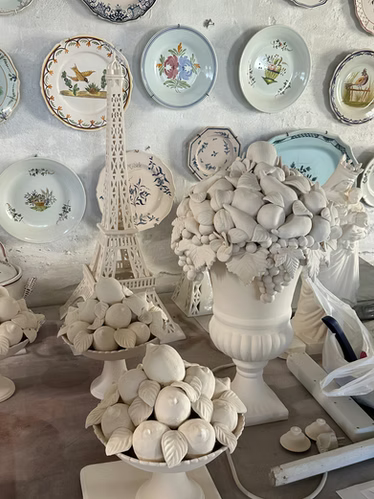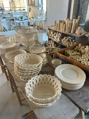 These exquisite earthenware pieces are made from raw clay, and in this case white. The same formula of raw material being used dates to the 18th century.