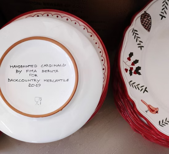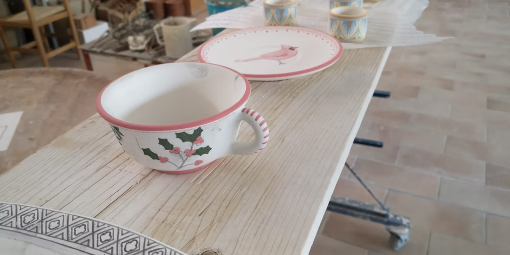 Late in the sixteenth century, maiolica workshops discovered that applying a second clear glaze to the objects produced a shiny surface that enhanced the color decoration. Today, not only are these same procedures used in-house at FIMA, but each step in the production is still skillfully executed by hand and by strict quality control, just as it was back in the 1800s.