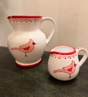 The 'Cardinal' Creamer is designed by Backcountry Mercantile and hand-painted by renowned Italian ceramicist Fima Deruta.