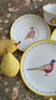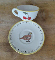 The 'Partridge' Teacup & Saucer in our 'Provencal' Collection is designed by Backcountry Mercantile and handpainted by famed ceramic maker Fima Deruta.
